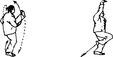 匕体微左转两拳变掌分别由上向下、向里抄抡尸左胯侧、(图77)