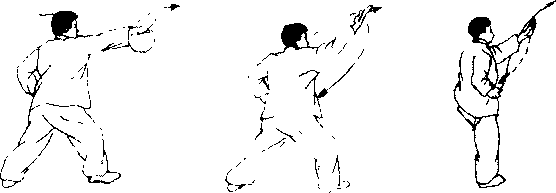 动作提要匕步劈掌、摇步劈掌、翻身劈掌三势要连贯步不停摇劈掌不停°