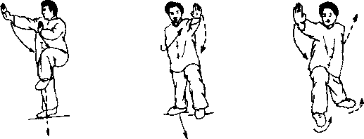 动作提要双摆掌要圆歇步摆掌要右斜上推掌上体要左倾、右视。