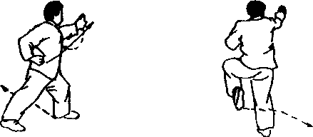 上动不停上体左转90度左脚向前落步成左弓步左腿