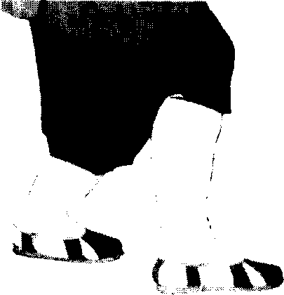 前腿微弓,后腿微曲,脚趾抓地,脚尖向前,前腿承受 身体重量约四成,后腿承受六成,所以称为四六步。此步特 点为灵活多变。(左右同)(图18)