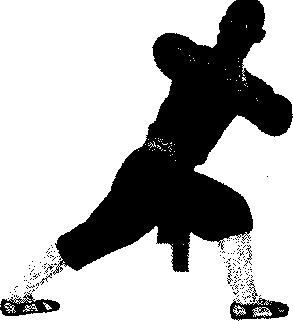 右脚向前上步腿前弓同时右拳由内向外前方翻砸拳心朝上左掌贴于右肘前下方(见图18-1)口右拳由外图18-3下身不动上身右转90度同时右拳后拉向右顶肘左掌贴于右拳拳面目视前方口(见图18-3)要点动作连贯迅速顶肘有力呼气口图19-1图19-2