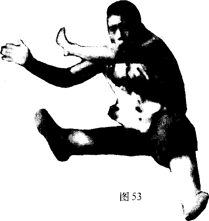 体向左旋转,身体腾空(图51)。