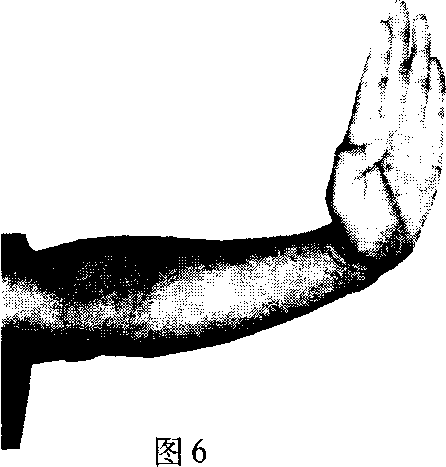 手掌伸开,五指弯 曲如勾,形同虎爪,力 贯五指。(图7)