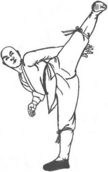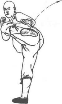 【动作】1. 左开门势站立。(图2-143)2. 重心后移,右腿挺直立地;左腿屈膝提起,与腰同高,大腿贴近胸部,小 腿外摆,与上体约成90度夹角,脚尖微勾,脚掌对着前方。(图2-144)3. 身体侧后仰,同时,左大腿催劲发力,脚掌向前踹出;右手置于右大腿后 侧,左手后摆。目视左脚。(图2-145)S2-143S2-143图 2—144图 2—144图 2 -145图 2 -145S2-143S2-143图 2—144图 2—144图 2 -145图 2 -145【要点】提膝与踹腿动作要协调一致。