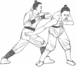 2.我起身,左脚 垫步,右腿发力,用 脚跟蹬踢敌腹部,将 其重创。(图9-11 )2.我起身,左脚 垫步,右腿发力,用 脚跟蹬踢敌腹部,将 其重创。(图9-11 )图 9-11图 9-11