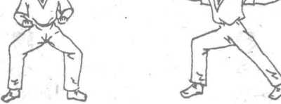 1 .两足左右分开,两腿屈膝成为马步,两手屈肘握拳, 抱于两助下前侧,拳心向上,目视前方(图11).