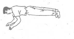 1、先用两手掌按地,再用两脚趾抵地,四肢撑地,在地 上身体胸腹离地三寸左右,形如现代的伏卧撑,接着身体中 部向上耸起,两掌猛力按地,两脚尖向后一撑,全身都凌空 离地,乘此按掌的劲力全身向前跃出,然后落地仍使掌趾撑 地,身体不诧贴地(图1)。