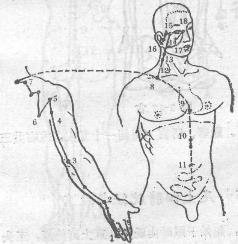缘到肘尖后面尺骨鹰嘴和肱骨内上豚之间向上沿着上臂外侧后边至肩关节后面绕行于肩胛岗的上下窝交会于督脉的大椎穴再向前进入锁骨窝中深入体腔与心脏联络沿食道通过横膈到达胃部和任脉交会于上脱、中院的深部统属于小肠。其分支从锁骨窝沿着颈旁上至面颊到目外眦与足少阳经交会于瞳子修穴反折过来到耳前入耳内。另一支脉从面颊分出斜向眼眶下缘到达鼻根的目内