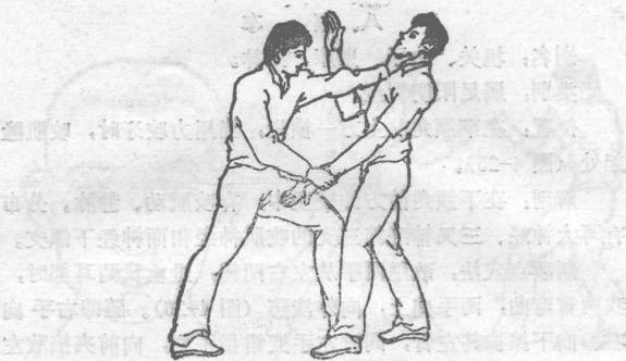 右、向下抓按其左臂同时左手变钳指手型向前夹掐敌左右的颊车穴(图4-27)。 -