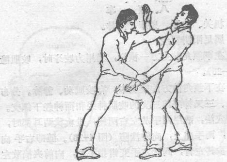 制敌点穴法敌从我左后方用右臂将我颈部锁抱时我