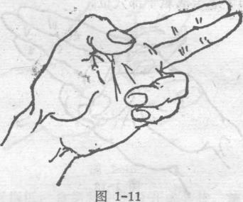 金枪指食指和中指并拢伸直拇指弯曲贴靠虎口处无名指和小指弯曲并拢(图1。要录拇指弯曲虎口紧闭紧闭|神速点穴制敌