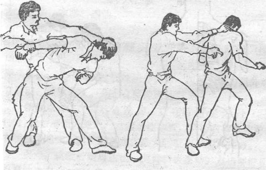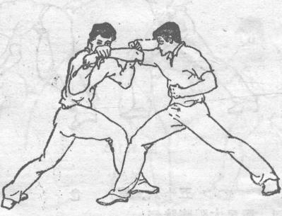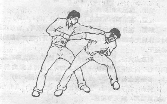 制敌点穴法敌用右拳进攻我头部时我右手向右刁抓