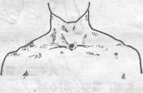 解剖在胸骨颈切迹上际之中央左右胸锁乳突肌中间深层为胸骨舌骨肌和胸骨甲状肌。皮下有颈静脉弓甲状腺下动脉分支。分布有锁骨上神经前支深部有气管