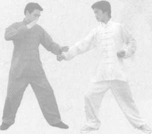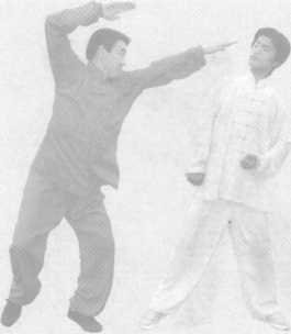 (2)假敌猛劲 攻我,我先用“侧盖 步”闪避。(图2- 288)