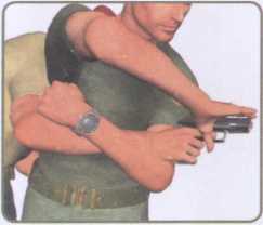 ?右手牢牢攥住敌人手枪枪管用力掰夺(图6-1-20、图6-1-20特写)