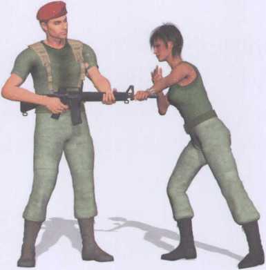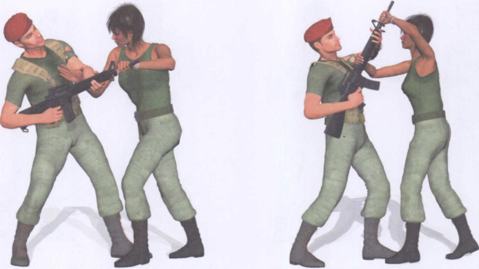 扣抓住对方所持武器枪身部位左扣抓住对方所持武器枪身部位左