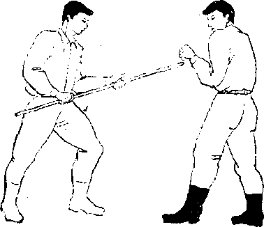 1敌人持棍上左步右脚蹬地发力向军善胸腹部猛戳(图