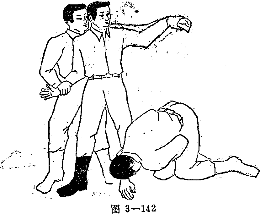 4°破坏敌人的锁喉后拽直敌人的胳膊目视敌左手(图3—142)