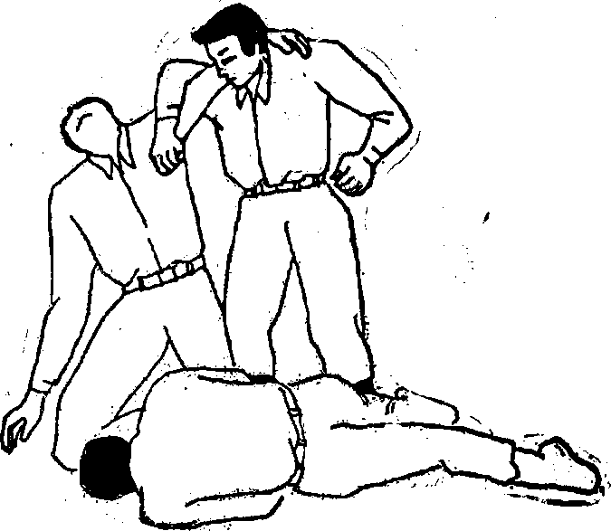 5,控制敌人手腕,军警应用肩膀或背部作为支撑点。注意敌人自身的重量对其肘关节产生的压力将进一步增加那只横跨于军警身上的圣臂所产生的杠杆作用。如果军警的另一只手仍被敌人所擒可采取将空闲的手拇指压在耳后穴,四指扣扒头部对准耳后穴施加压力(图3—143)
