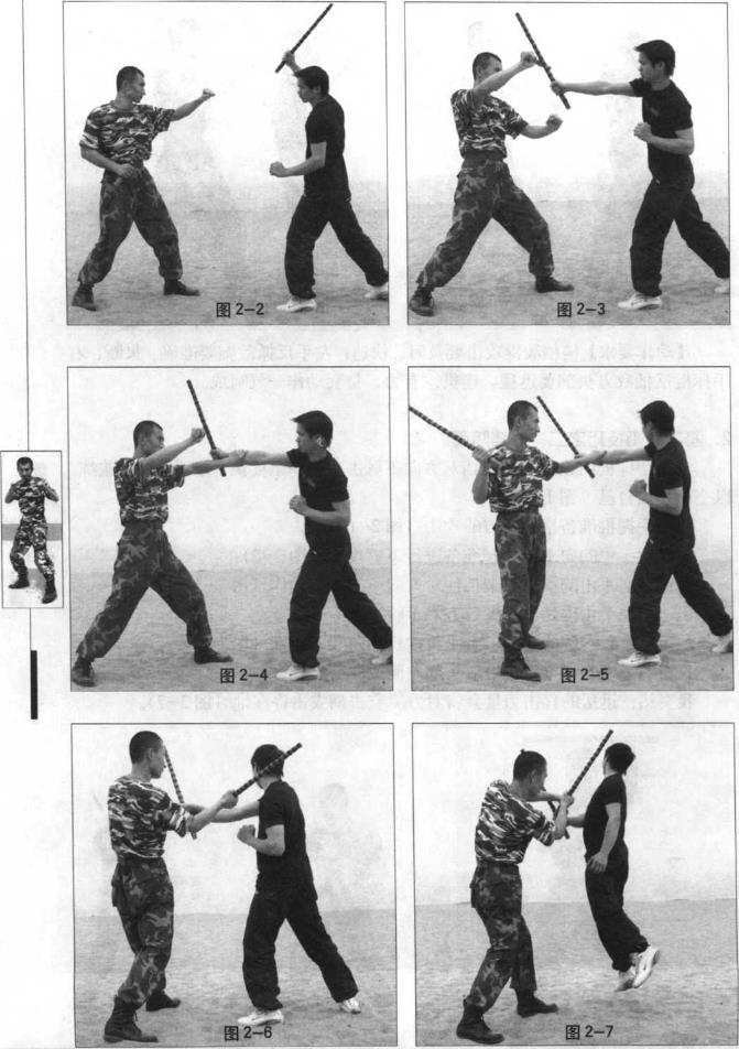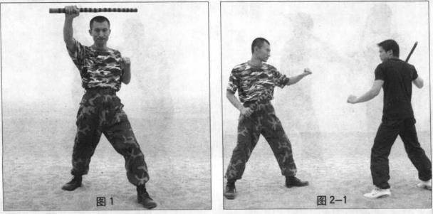 对将右手中的向上棍挥起准备进行下劈攻击(图2-2)