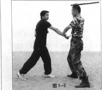 迅速用左手由内侧去抓握敌方右手腕(图2-4)