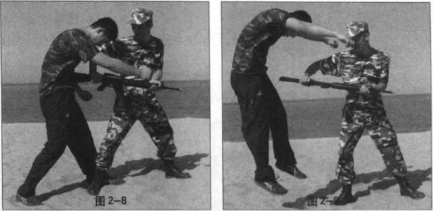不待对方逃脱我早已将枪托狠狠撞向其腹部要害处(图2-8)
