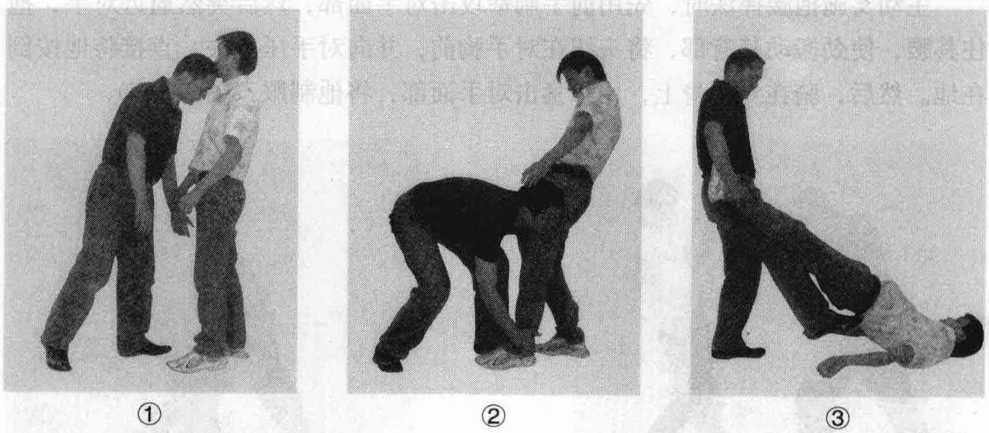在格斗中普遍都使用抱腿摔法如能占居优势便可一举取胜。如若成功施用抱腿摔对手就会被摔个仰面朝天。