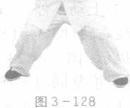 (10)接上式左移身,右腿上步踏圆线,马步面对圆 心,双掌推向圆心,目视前方(图3 - 128)O
