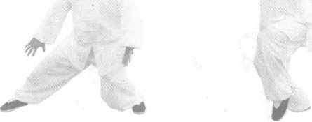 (8)接上式掌形不变,转至左脚在前,扣步踏圆线, 重心移于左腿(图3 - 126) o