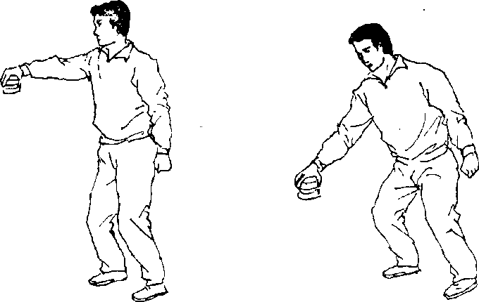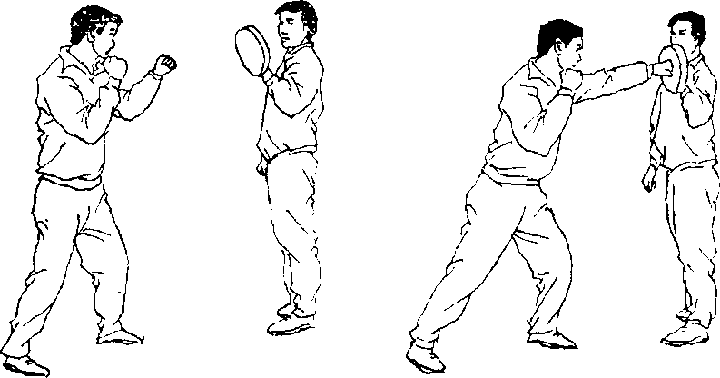 5 .打手靶:一人持手靶上 下、左右在面前摆动(图107), 另一人根据手靶的位置以不同