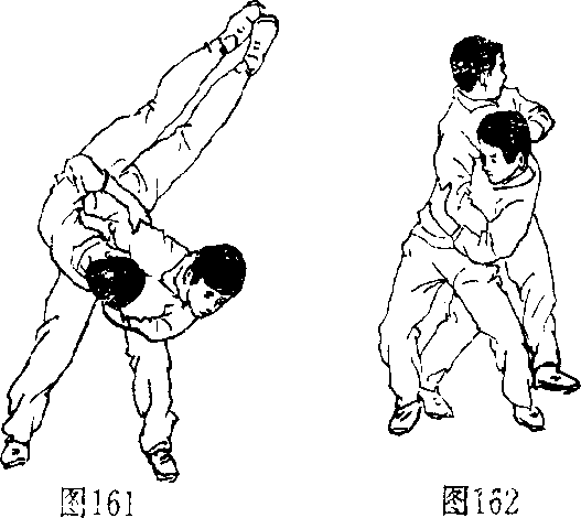9.换腰:两人对面站立,互相插肩抱肘(图160),