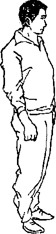 1.前倒:由立正站立姿势开始(图163),身体挺身前 倒,同时两臂屈肘前摆,手心向下,小臂和手掌同时触地, 抬头,两脚尖外展(图164)。用于向前倒地的自我保 护。