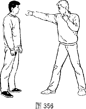 甲、乙双方搏击,乙用右直拳击甲面部(图356)