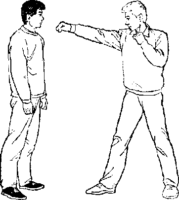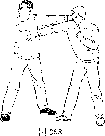 甲、乙双方搏击,乙正面用右直拳击打甲胸(面)部 (图360 )。