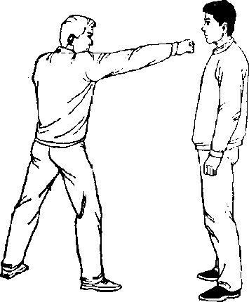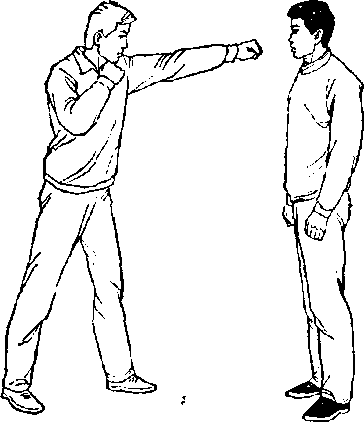 甲、乙双方搏击,乙正面 用右直拳击打甲胸(面)部 (图385)o