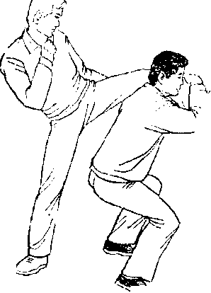 2 .勾踢对手尽力向上抬腿。