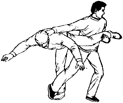 3 .右腿由乙裆中向后打其右腿(图434).可把乙向前 摔倒.