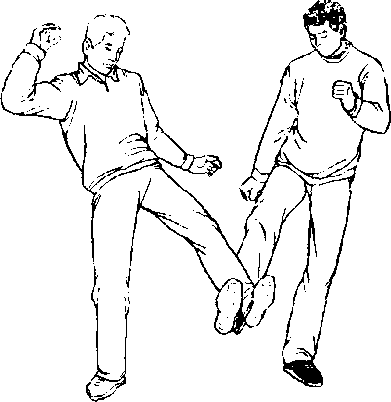 3.起右腿勾踢乙左脚(图441)。可把乙勾踢倒地。