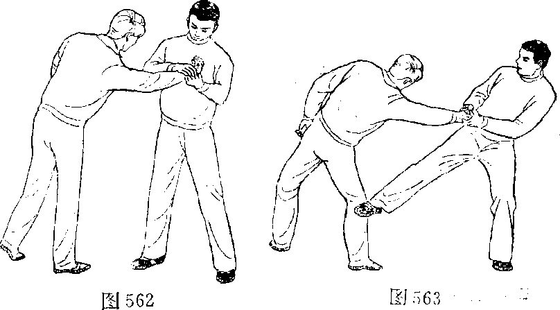 2,右手扣握乙右手背外翻上体左我(图562)向后