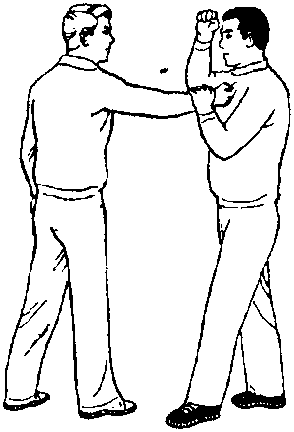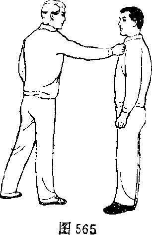 甲、乙双方搏击乙正面用右手抓握甲的前衣领(图565)