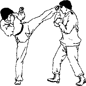 2对手左边腿攻击我头部我右手挂挡防守(图332)。