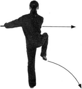 (1) 双手持棍向身体左侧回收,身体随之左转;同时身体 重心移至左腿,右腿提膝抬起。(图60)