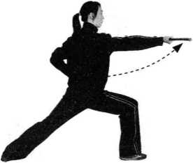 (1)右手持棍坐腕使棍梢向左,接着右臂屈肘,同时前臂 外旋,使握棍手心向上,棍梢由左向右划一立圆。(图149)