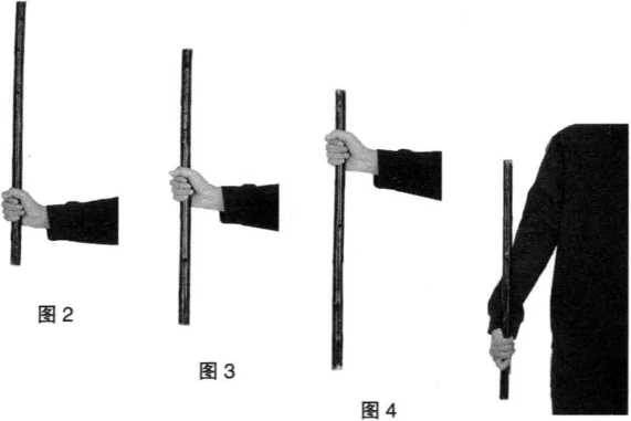 (1) 正握:一手握于棍把段,虎口所对方向为梢端,小指 所对应方向留2厘米的空隙。(图2)