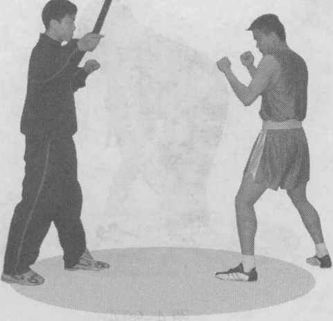 4, 对方持短棍反手平扫我头部右侧时的反击