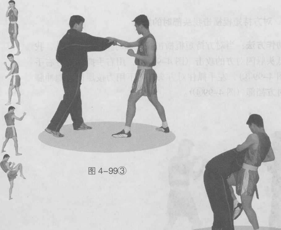 动作要点反应要快反击时机要把握准确左手推拍对手右前臂时要准确。推拍防守与踢裆要同时进行踢裆要狠、要准。