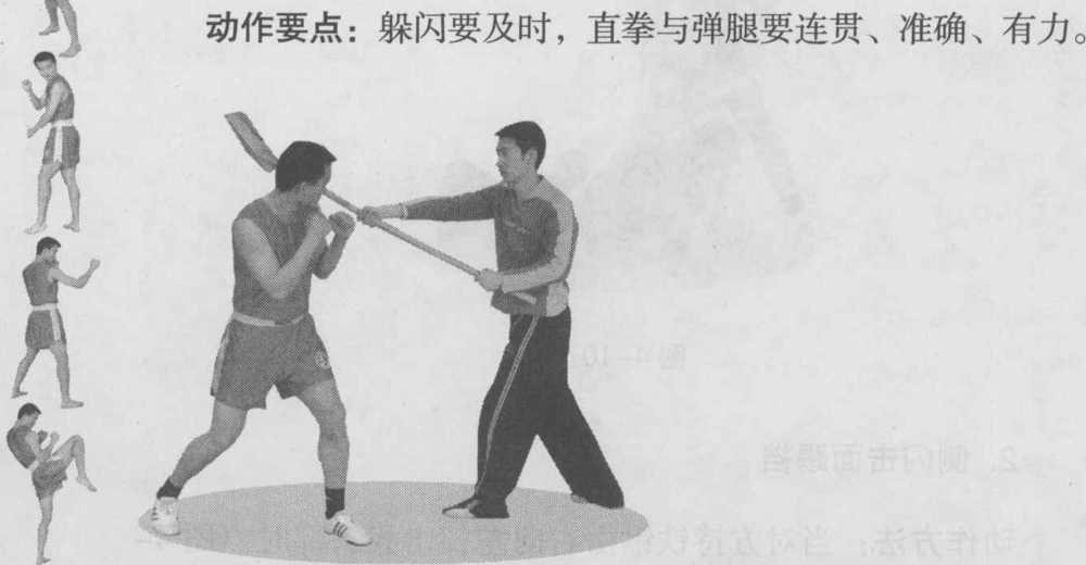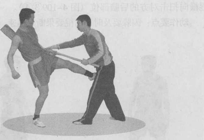拳击打对方的面部紧接着以左弹腿攻击对方的裆部(图4-108)