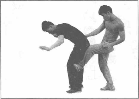 动作要领双手配合向上推送对方双臂蹬踏对方左膝胴窝处要快速、有力对方倒地后要快速跟进动作使对方没有喘息的机会。