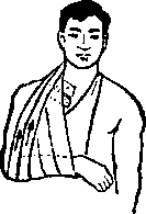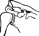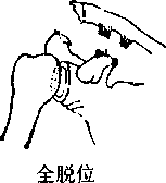韧带扭伤无脱位者局部施以按摩伤臂适当休息即可痊愈。半脱位时要整复固定肘屈90。术者一手向下按压锁骨外端另一手向上托肘复位后用粘膏固定粘膏粘贴途径是由锁骨外端向前下经肘部再向后上回到锁骨外端共贴三圈用悬臂带将前臂悬挂于胸前(图12-2)。